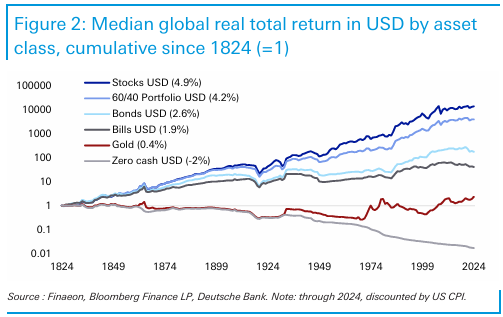 Las acciones (Stocks) con un 4,9% anualizado entre 1824-2024.